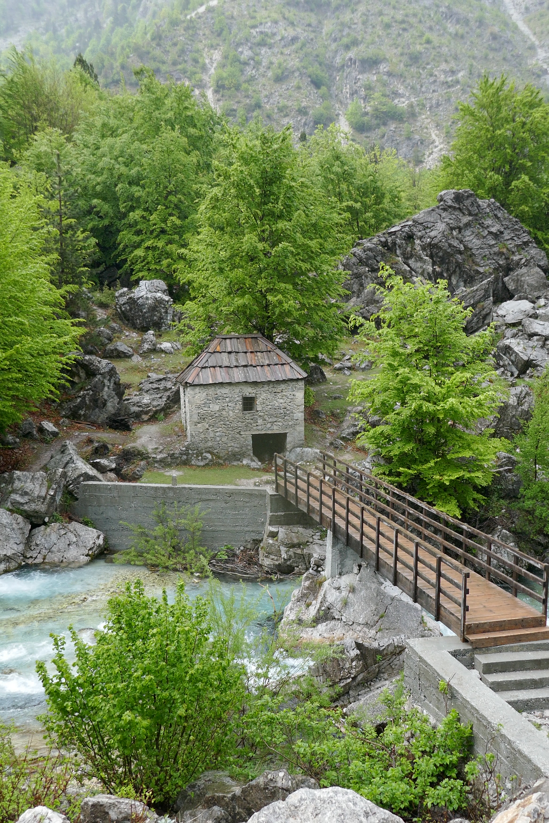 albanische alpen albanian alps bäume trees berge mountains brücke bridge felsen rocks fluss river landschaft landscape natur pflanzen plants vegetation