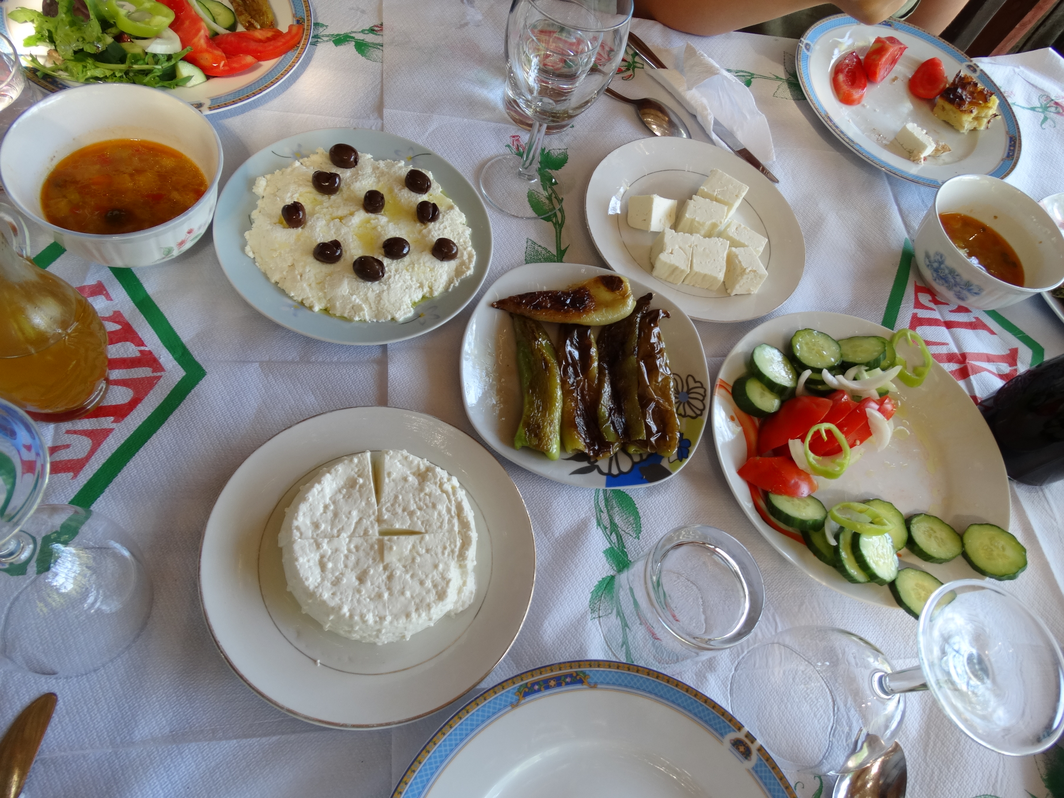 gemüse vegetable käse cheese oliven olives tirana tischdecke tablecloth