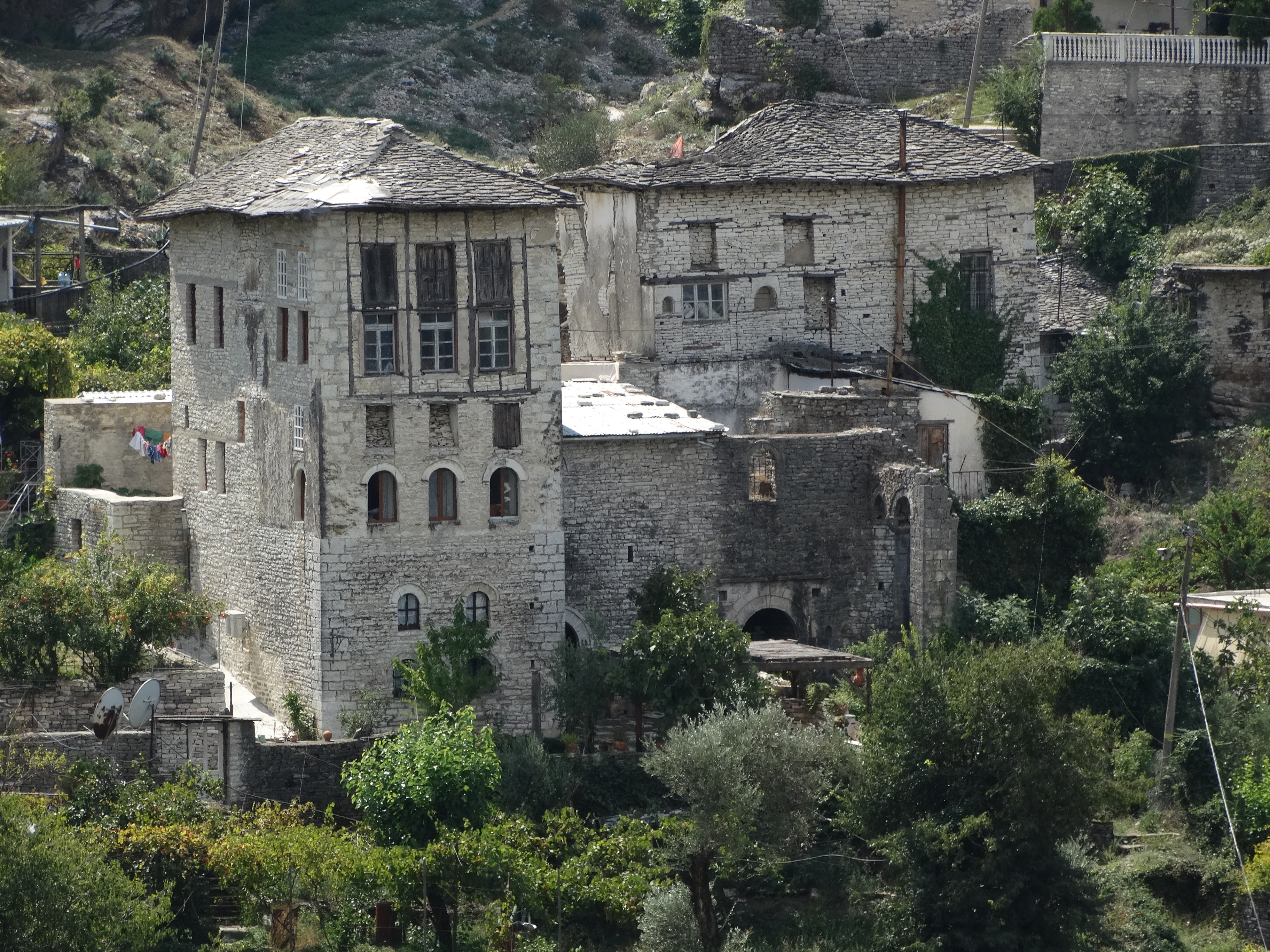 berge mountains city made of stone enver hoxha gjirokastr häuser houses ismail kadare lebensart lifestyle museumsstadt city of museum stadt aus stein unesco weltkulturerbe world heritage vegetation